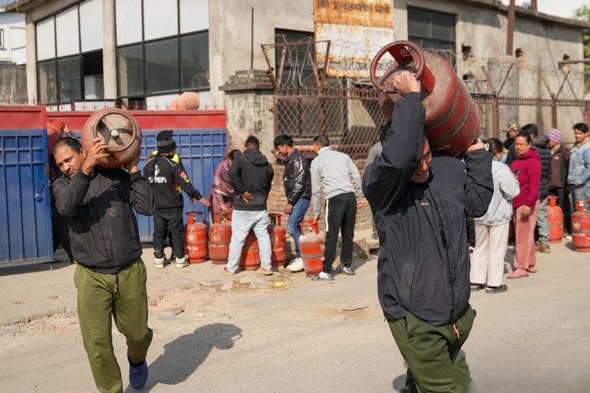 बालाजु औद्योगिक केन्द्रमा रहेको नेपाल ग्यासको कार्यालयमा ग्यास लिने उपभोक्ताहरूको भिड