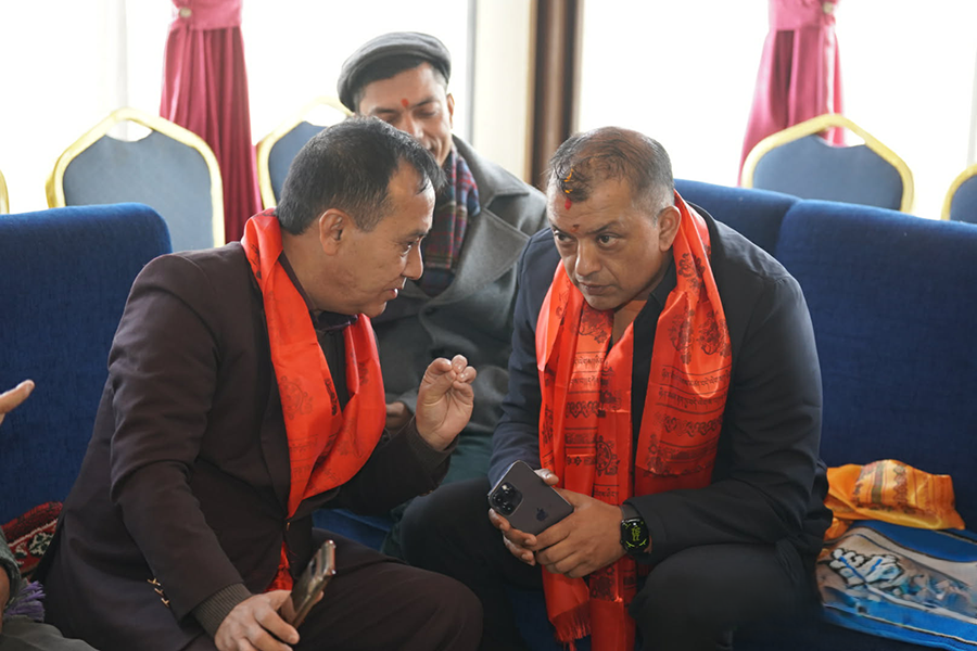 गगन– विश्वप्रकाश कमलपोखरीमा पदाधिकारीको सूची बनाउँदै, भृकुटीमण्डपमा कुर्दै कार्यकर्ता